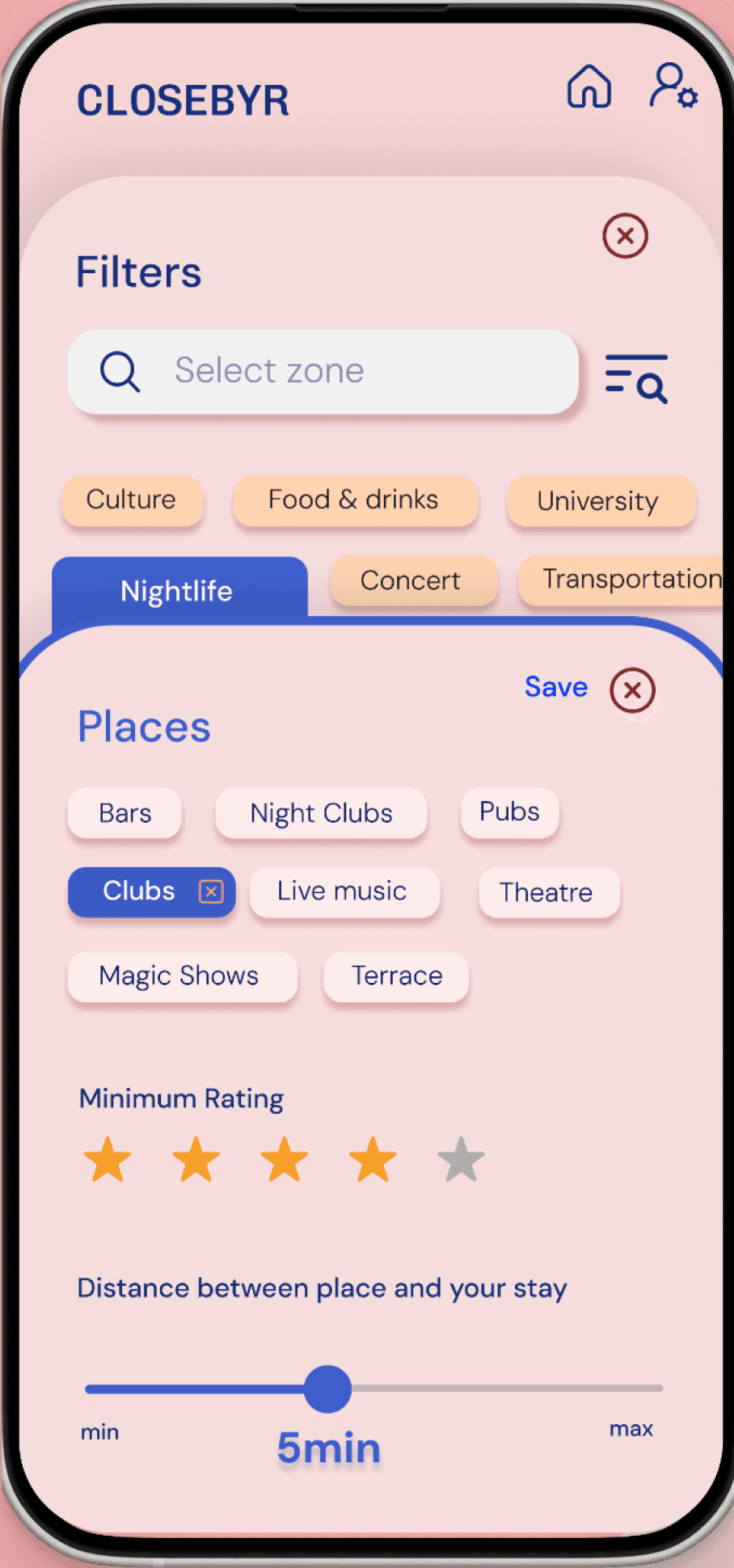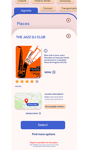 I also redesigned the entry screen to first explain how the app works, then guide users to search by city or country. From there, the app provides an overview of what’s happening in that city, and users can apply more detailed filters if they don’t immediately find the event or concert they’re looking for.